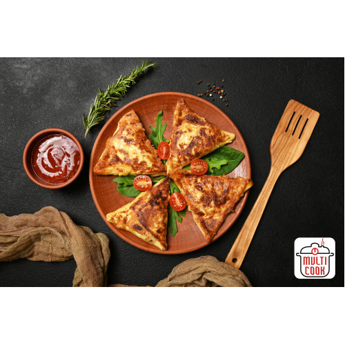 Pork Benderiki are thin crepes folded and stuffed with juicy pork filling, then pan-fried until golden and crisp on the outside and tender inside. The crepe batter is made from premium wheat flour, cow milk, chicken eggs, butter, water, white granulated sugar and salt, giving a soft, elastic wrapper that browns beautifully in the pan.