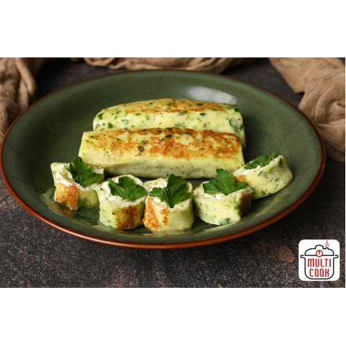 Inside, there is a smooth, rich filling of spinach and cream cheese, giving a mild, creamy taste with a fresh green note. This combination makes the crepes perfect for those who love light but satisfying savory dishes – ideal for breakfast, brunch, lunch or a quick dinner.