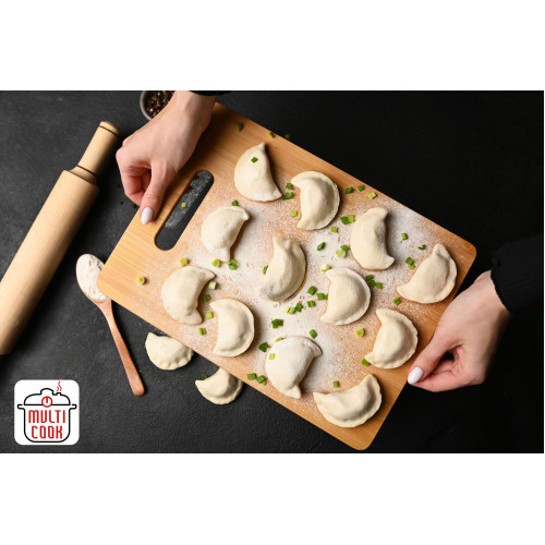 The dough from premium wheat flour and water stays tender and elastic after boiling, while the filling remains smooth and satisfying. Serve potato pierogy as a main course or hearty side dish – they are especially delicious with butter, sour cream, fried onions or fresh herbs.