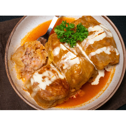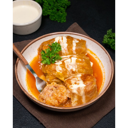 These home-style cabbage rolls are generously stuffed with a juicy mix of premium veal and beef, tender boiled rice and sautéed vegetables, all wrapped in soft white cabbage leaves. It’s a hearty, comforting frozen ready meal that brings classic homemade flavor to your table with almost no effort.
